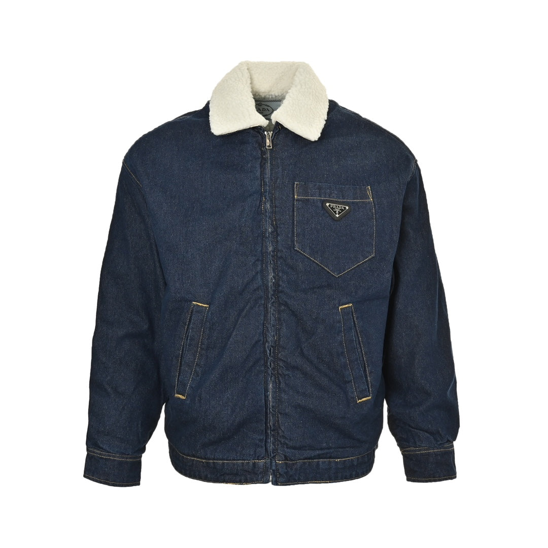 Denim lambswool lapel jacket