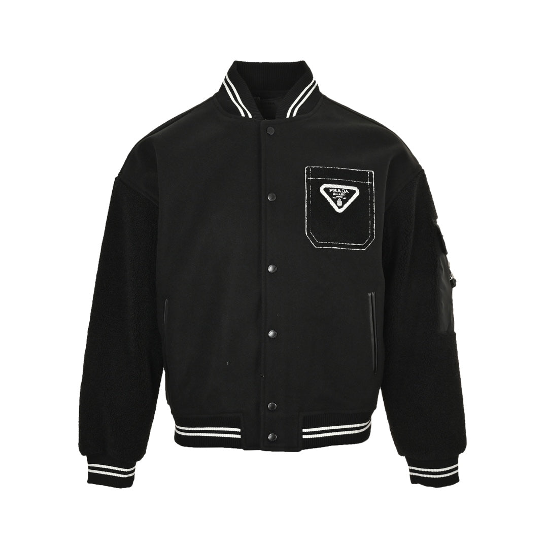 Lambswool patchwork baseball jacket