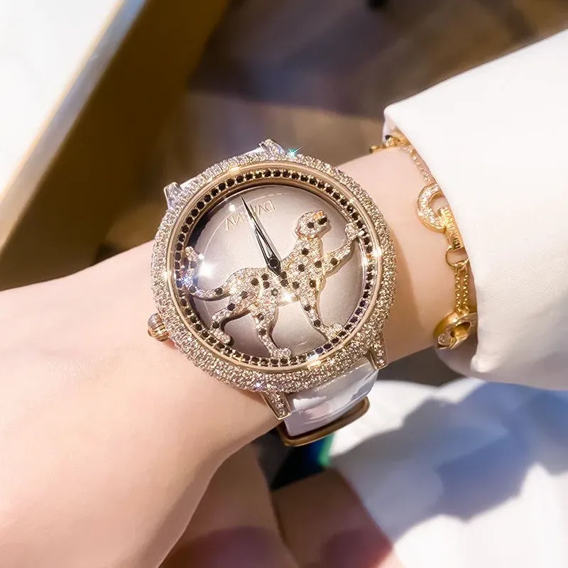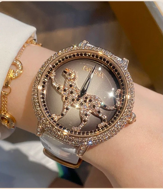 DAVENA Ultra-Flash Gold Leopard Full Diamond Watch